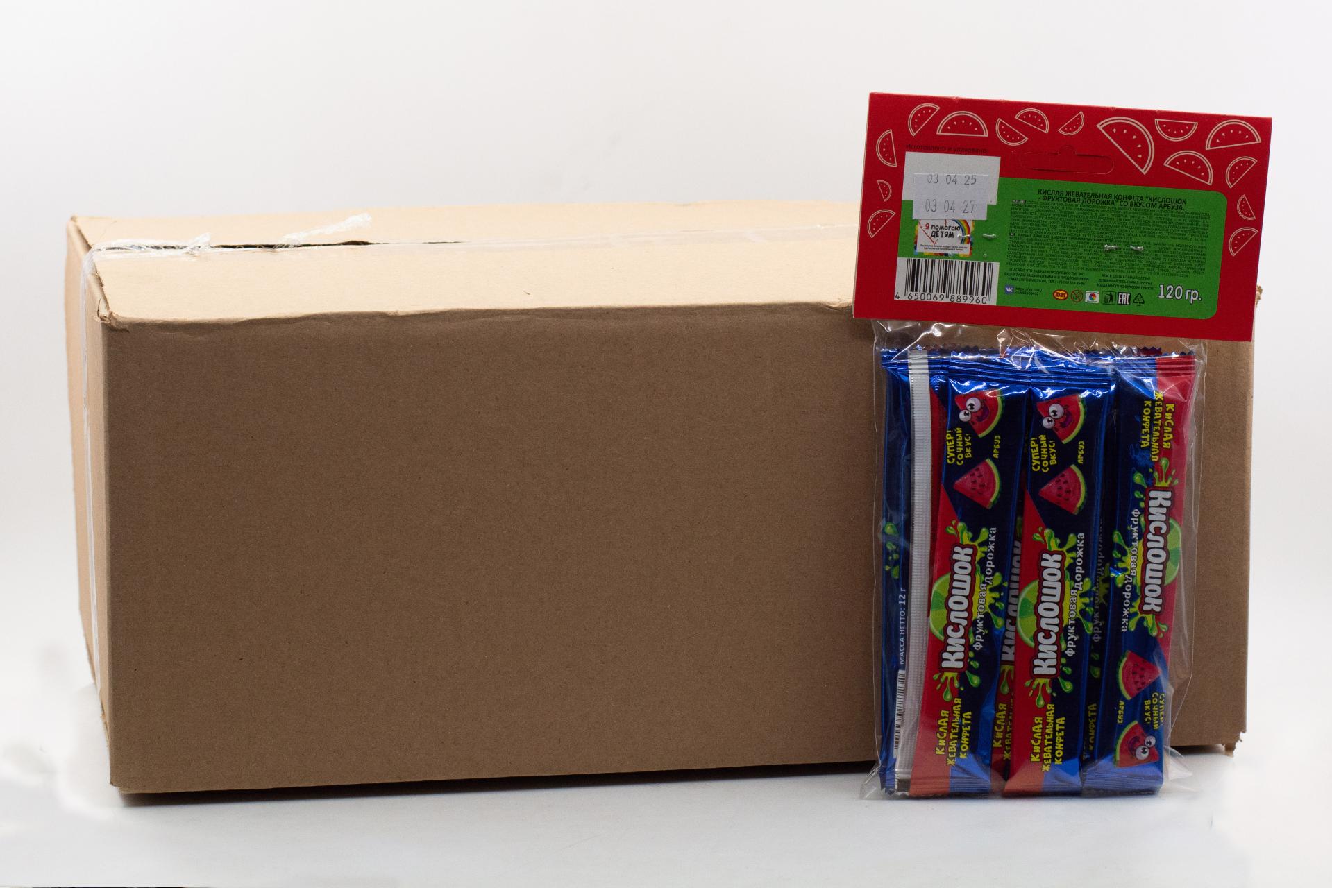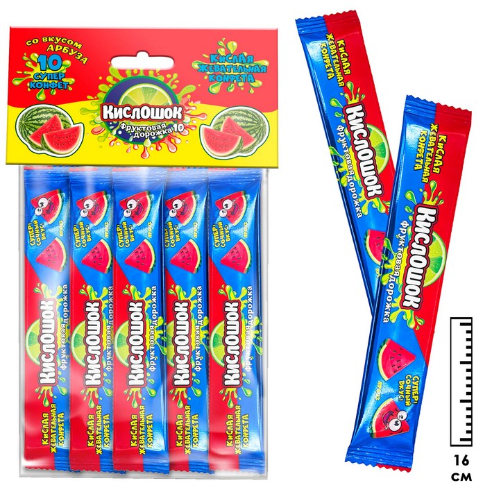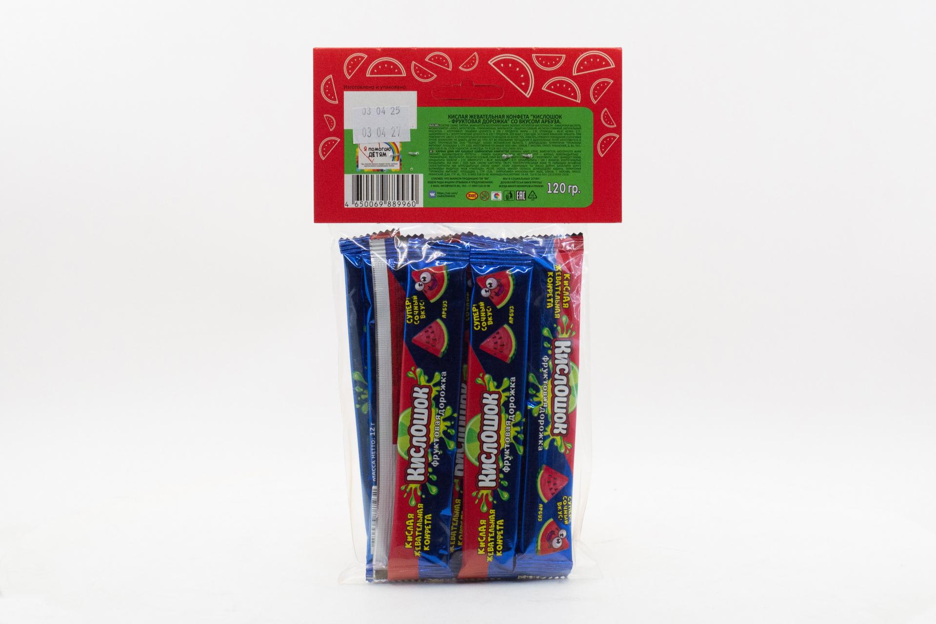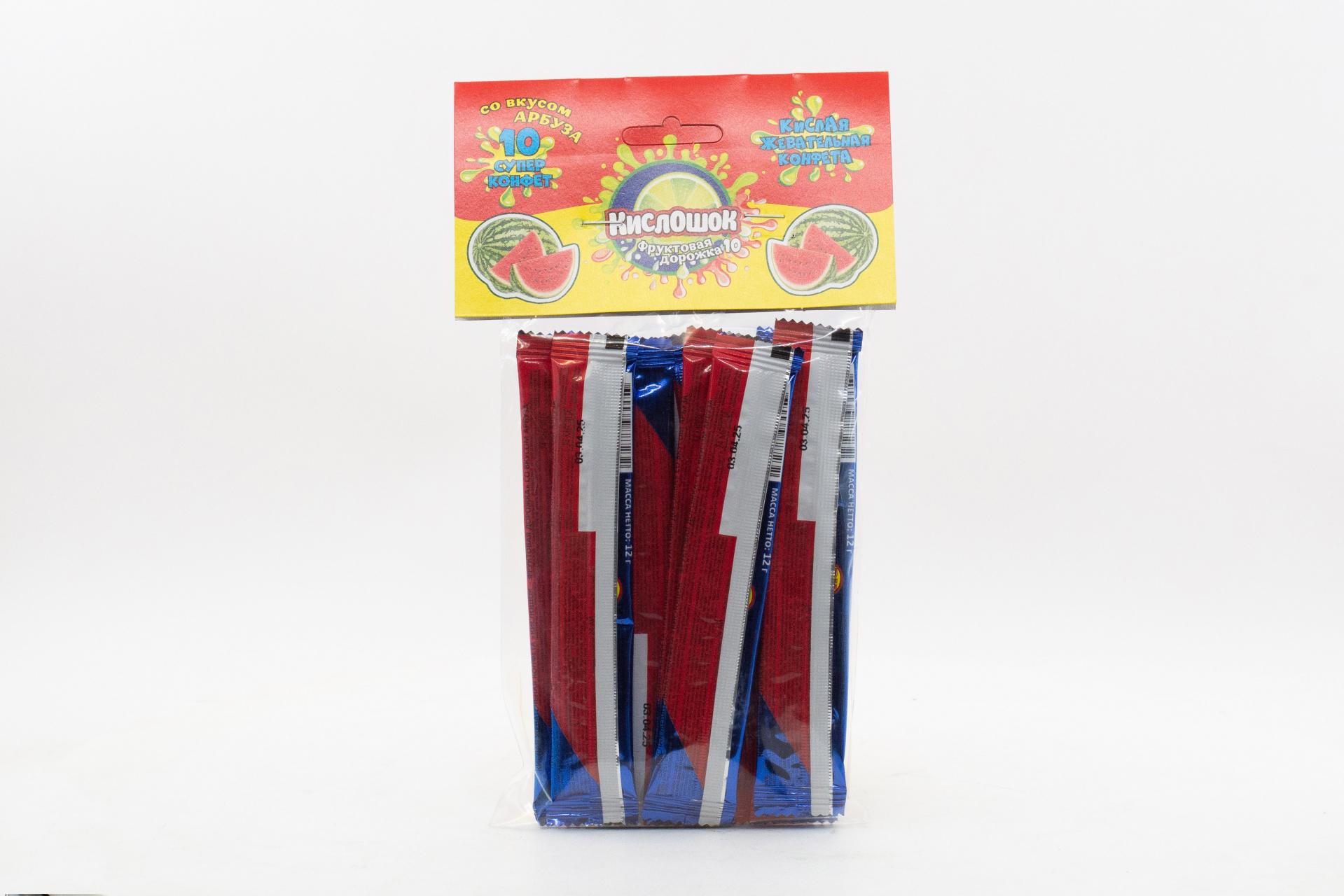 Кислая жевательная конфета Кислошок - фруктовая дорожка 10 со вкусом арбуза (Россия) 120г61,33 руб. за штуку (в упак. 36 шт.) |